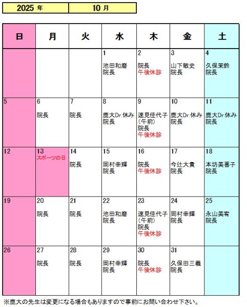 令和7年10月担当医師のお知らせ