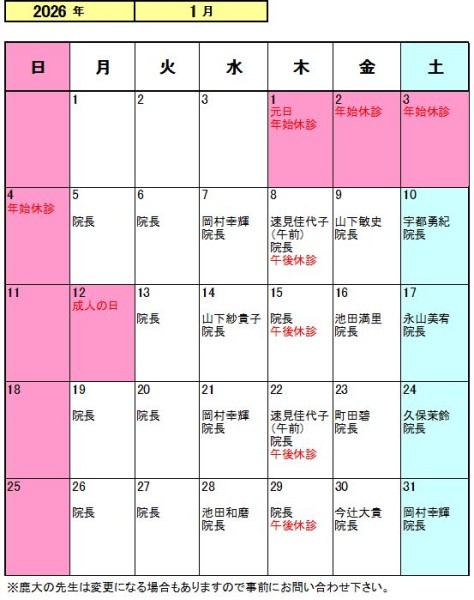 令和8年1月担当医師のお知らせ